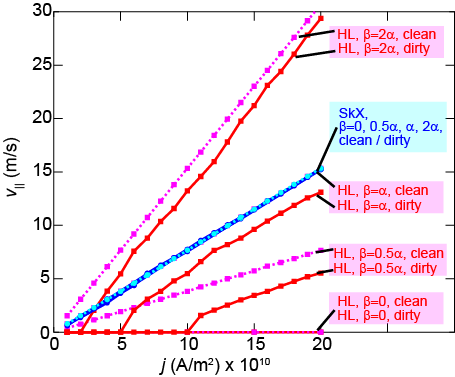 MnSiやFe1-xCoxSiなどのB20型カイラル金属磁性体において、磁場下での強磁性交換相互作用とDzyaloshinskii-守谷相互作用の拮抗により生じるトポロジカルな渦状スピン構造(スキルミオン)は、ナノスケールの極微サイズであることと、磁壁駆動の閾値電流より5-6桁小さい極小電流で駆動できることから、高密度省電力データデバイス応用に向けたスピントロ二クス研究の新しい研究対象として注目を集めている。そこで、不純物の存在下でのスキルミオンの電流駆動ダイナミクスを、Landau-Lifshitz-Gilbert方程式の数値シミュレーションにより調べた。まず、ピン止め効果の閾値電流がらせん磁性や強磁性磁壁に比べて圧倒的に小さいという実験事実を確かめた。さらに、内的ピン止め効果と外的ピン止め効果を分けて検証することで、(i) 「スキルミオンでは、ヘリカル磁性や強磁性磁壁と異なり、内的ピン止め効果がまったく働かない」ことや、(ii) 「スキルミオンは、変形の自由度やピン止め中心を避けながら運動する自由度を持つため、外的ピン止め効果を圧倒的に受けにくい」ことを明らかにした。その結果、スキルミオンの電流密度-駆動速度の関係は、不純物の濃度/強度や非断熱項の結合定数(β)の大きさにほとんど依存しないユニーバーサルなものとなる。これらの発見は、スキルミオンなどのトポロジカルなスピンテクスチャが、スピントロ二クスの新しい研究対象として非常に有望であることを示している。カイラル強磁性体におけるスキルミオン結晶のスピン波モードと強励起効果